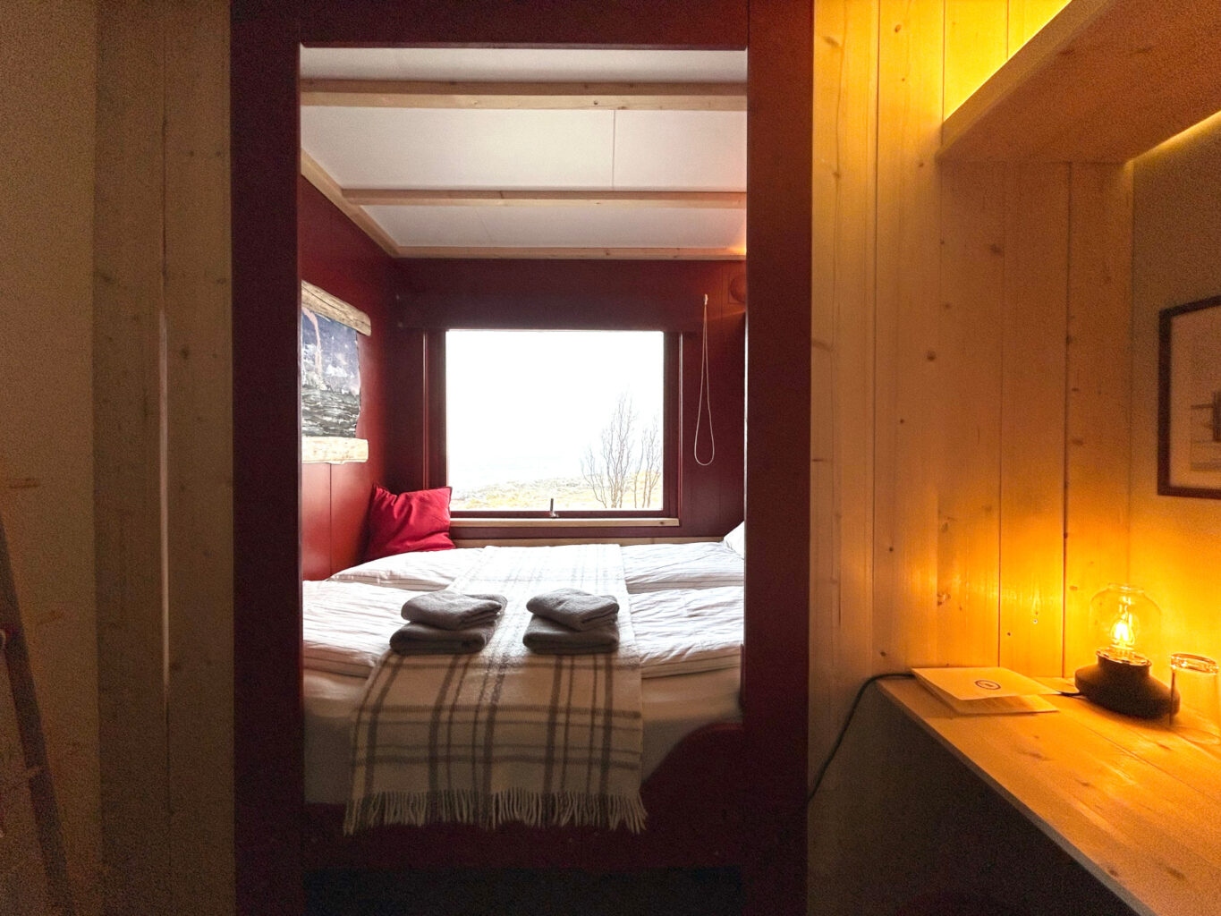 The red house, the refuge for sea and mountain travellers, is half a century younger, but its four rooms and lounge are still made of wood, nails and glass. Its large windows open onto the Auroras, the ocean and the present of fibre optics. The red house accommodates travellers with a large living room with a wood-burning stove and large windows overlooking the sea. Guests have free access to the kitchen. Two large bathrooms are at guests’ disposal.